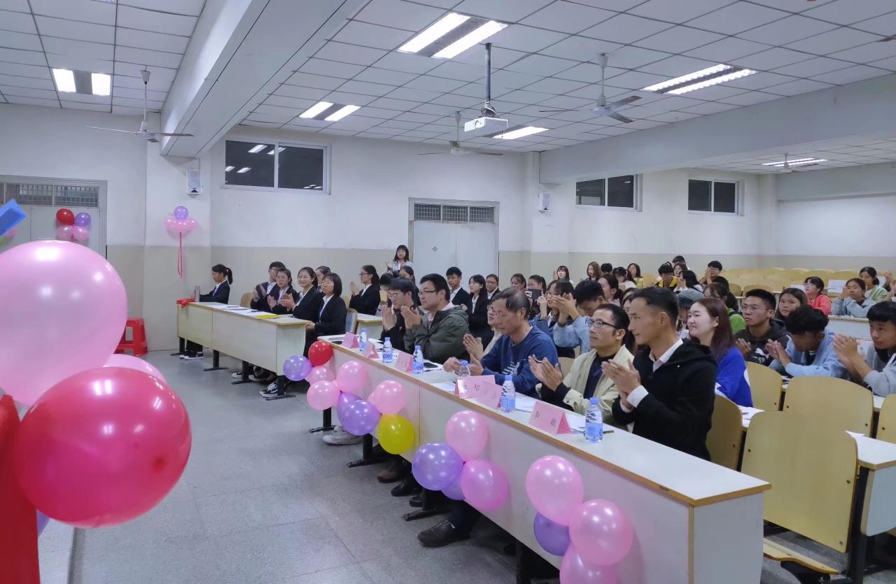 学时政,知世情,懂原理,强能力。11月15日晚上7:00,hjc黄金城官方网站第八届思政之音文化节闭幕式暨寝室文化评比大赛在12教104顺利举行。学院党委书记吴智勇,党委副书记马小佼,班主任周涛、邓亚中、李敏,兼职辅导员董思遥出席比赛并担任评委,大一大二全体学生以及全体团委学生会干部参加比赛。