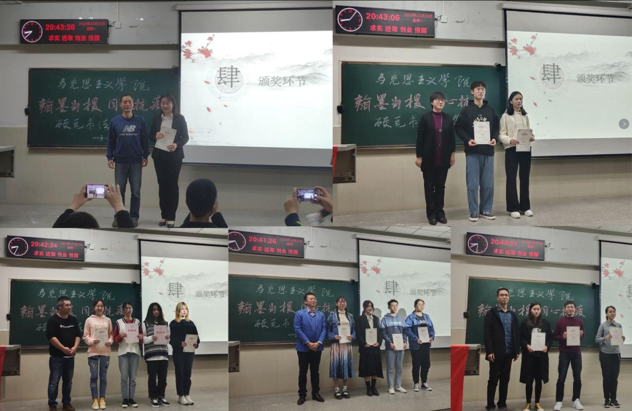 吴智勇书记对本次硬笔书法大赛做总结。他表示,本次书法比赛体现了同学们对书法艺术的执着和热爱,为同学们展现自我、发现自我、提升自我提供了舞台。他希望马院学子在学习过程中积极参与各类活动,取长补短,全面发展,努力成为“站起来能讲、坐下去能写、沉下去能干”的社会主义可靠接班人。