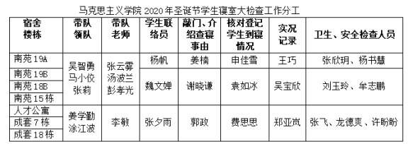 姜学勤、涂江波带队走访了研究生宿舍,详细了解学生的寒假去向及在校期间的学习、生活状况;吴智勇、马小佼则带队走访了本科生宿舍,检查大一学生宿舍卫生状况,询问在校学生的寒假计划及期末复习状况,提醒圣诞、元旦、寒假安全注意事项。