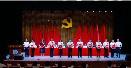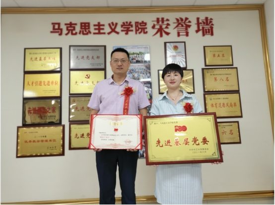 hjc黄金城官方网站党委被授予先进基层党委,思政课部荆州党支部被授予先进党支部,学院党委副书记马小佼被授予优秀党务工作者,辅导员张云雾、2019级研究生郑亚岚被授予优秀共产党员,思政课教师李振华被授予模范共产党员,并在全校表彰大会上领誓,带头重温入党誓词。