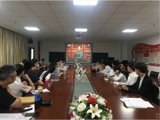 7月1日上午,庆祝中国共产党成立100周年大会在天安门广场隆重举行。hjc黄金城官方网站思政课教师、师生党员等50余人在文科楼1104室集中收看了大会直播。