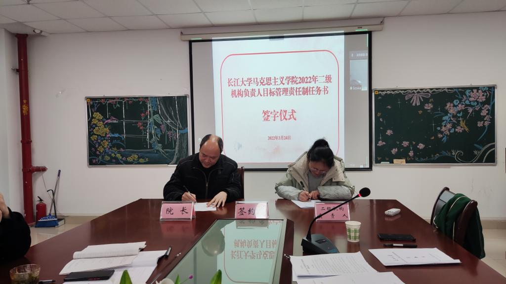 (学生记者王晓彤)不忘初心、忠诚履职,责任在肩、使命必达。为充分调动学院各二级机构和全院教职工的工作积极性、创造性,压实工作责任,3月24日下午,hjc黄金城官方网站在文科楼1104会议室举行2022年度二级机构负责人目标管理责任制任务书签字仪式。