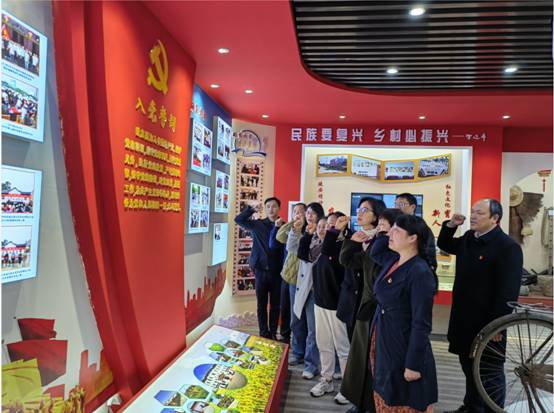 在枪杆村党员群众服务中心,图书馆馆长王红松和hjc黄金城官方网站党委书记刘小燕共同为该村延安精神教育馆捐赠了近百册党史党建类图书。随后,全体参学支部党员在该村原党支部书记邢昌焕与村“两委”班子成员的带领和讲解下参观了枪杆村延安精神教育馆,沉浸式学习延安精神、农耕文明史、村发展史,重温入党誓词。并围绕“大力弘扬延安精神,党建引领村居高质量发展,着力推进乡村振兴”开展了专题交流研讨。随后,还实地参观了枪杆村特色村组以及荆州市农甜农业发展有限公司,调研学习智慧农业、基层治理、美丽乡村建设等成功经验。