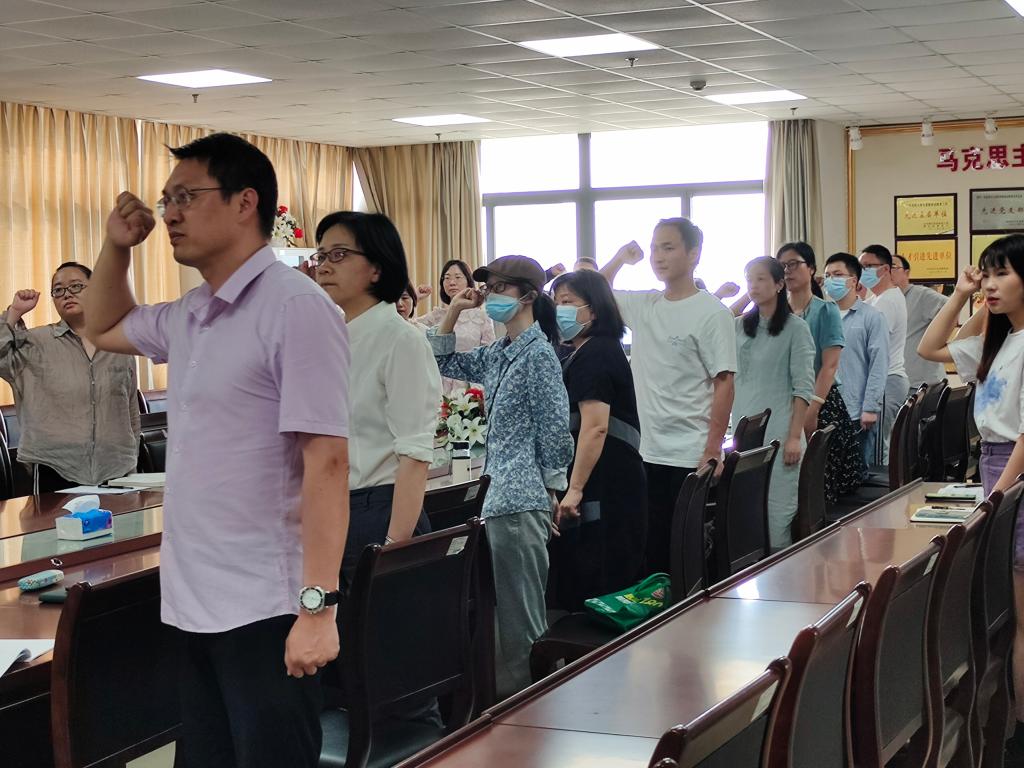 本次党日活动围绕“重温入党誓词、缴纳5月党费、集体诵读《党章》、学习党的创新理论、开展主题研讨”五项议程展开。支部党员陈先蕾在《党章》学习中设置了知识抢答环节,活跃了会场氛围。与会人员集中学习了习近平总书记在中国人民大学的考察讲话、习近平总书记在庆祝中国共产主义青年团建团100周年大会上的讲话精神等内容,重点学习了《关于加强和改进新时代师德师风建设的意见》。