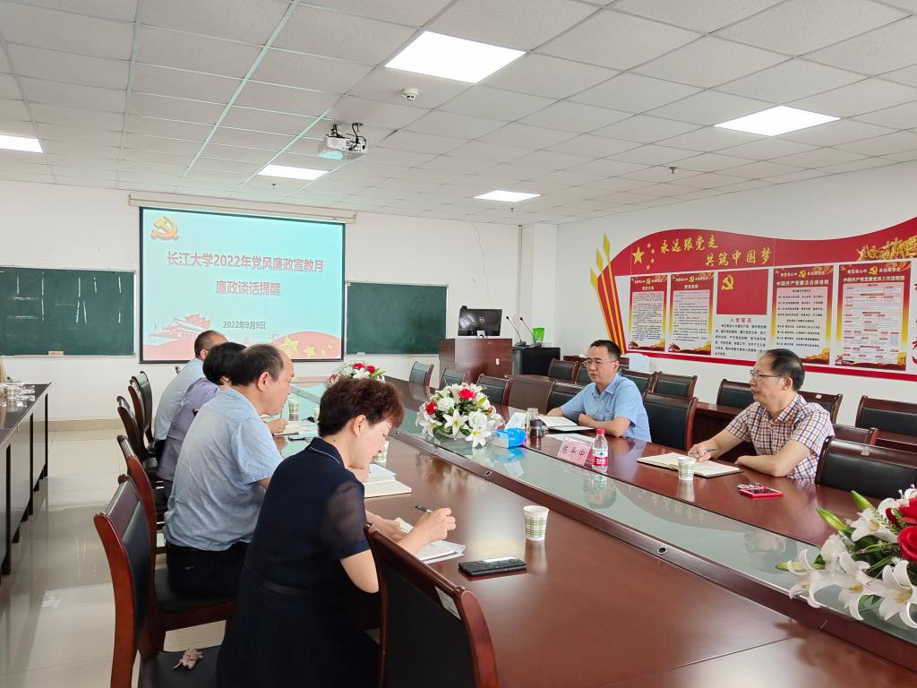 在学校党风廉政建设宣讲月活动深入开展之际,为落实全面从严治党监督责任,校党委书记王建平、校纪委副书记陈平中于9月9月上午来到hjc黄金城官方网站,对我院全体班子成员开展了谈话提醒。