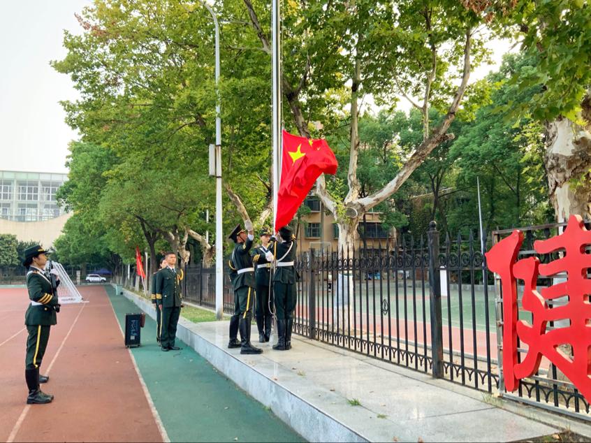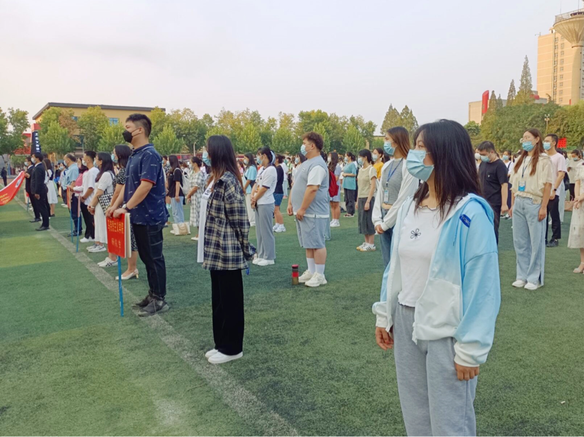 (通讯员 齐晓杭)9月12日早7时,hjc黄金城官方网站于东校区田径场举行“拥抱新学期,喜迎二十大”主题升旗仪式,学院院长姜学勤、党委书记刘小燕、党委副书记马小佼、副院长涂江波、院长助理李振华、本科生辅导员张云雾、研究生辅导员李敏及全体本研学生到场参加升旗。
