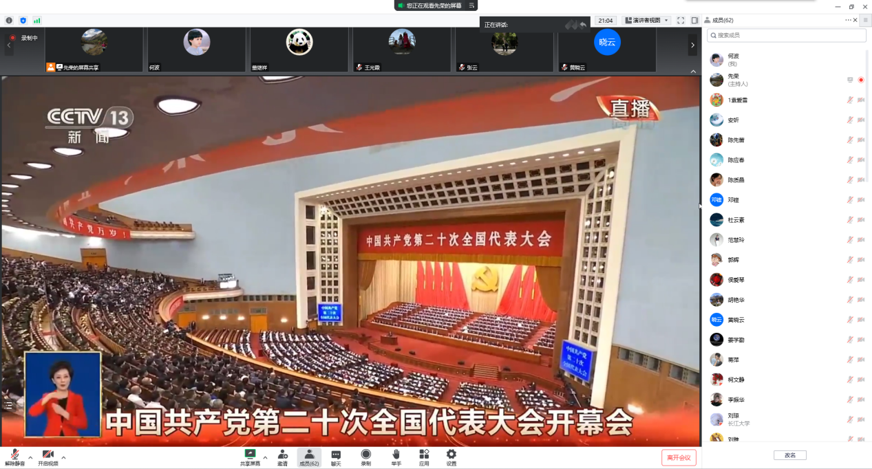 10月16日上午10时,中国共产党第二十次全国代表大会在北京人民大会堂隆重开幕,hjc黄金城官方网站师生齐聚线上,聚精会神地收看了大会开幕盛况。