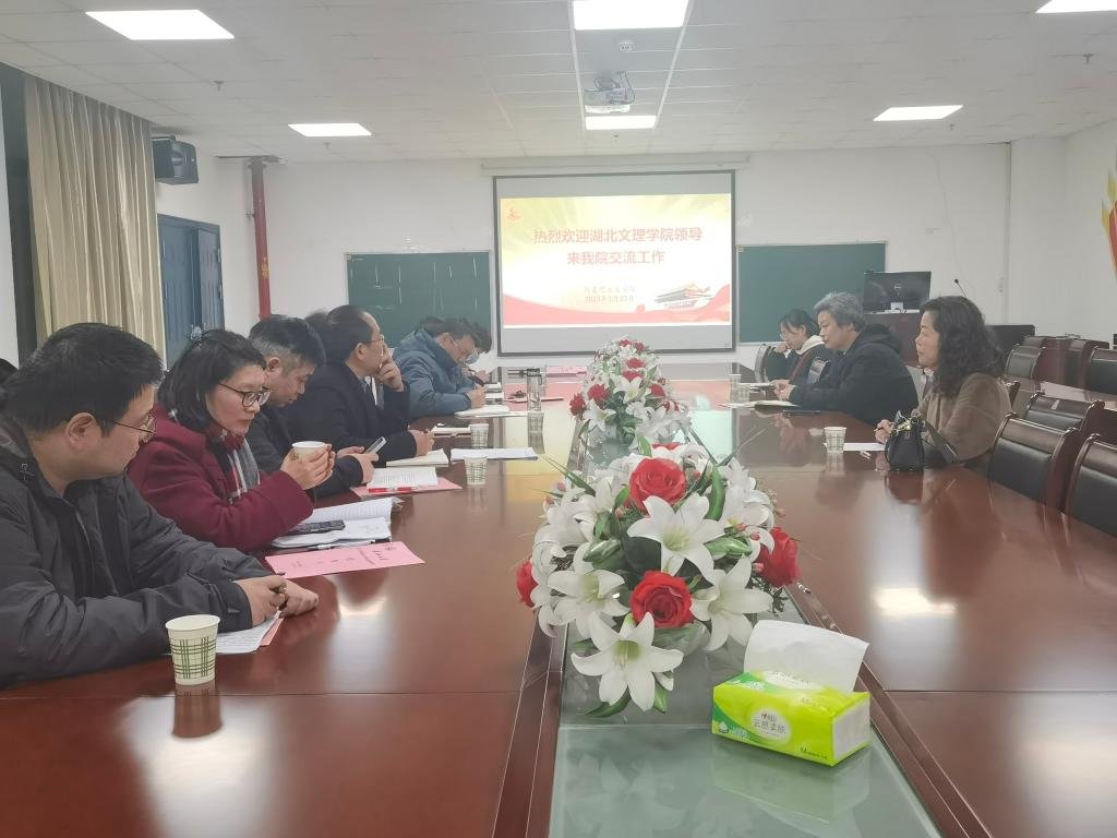 3月23日下午,湖北文理学院hjc黄金城官方网站副院长李双胜一行3人来我院学习交流。双方就师资队伍建设、大中小思政课一体化建设等开展交流。我院党委书记刘小燕、院长姜学勤等学院领导,以及各课程组负责人参加了交流会。