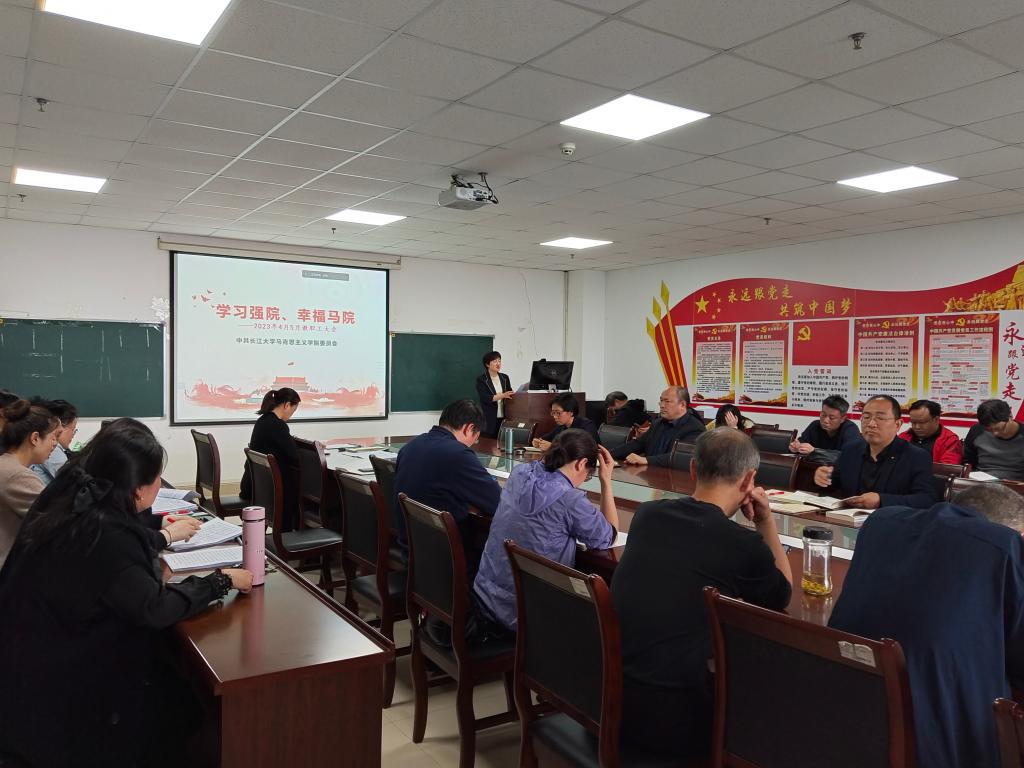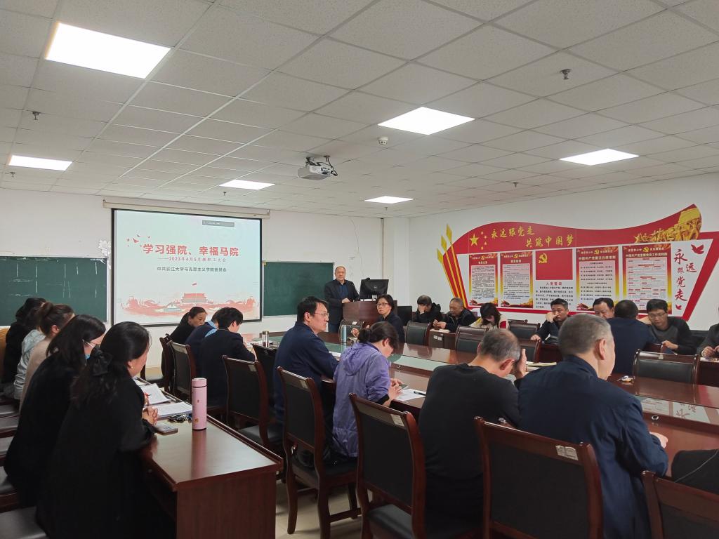 5月11日下午,hjc黄金城官方网站在文科楼1104室召开本月教职工大会,全院教师以线上线下相结合的方式参会。会议由院长姜学勤主持。