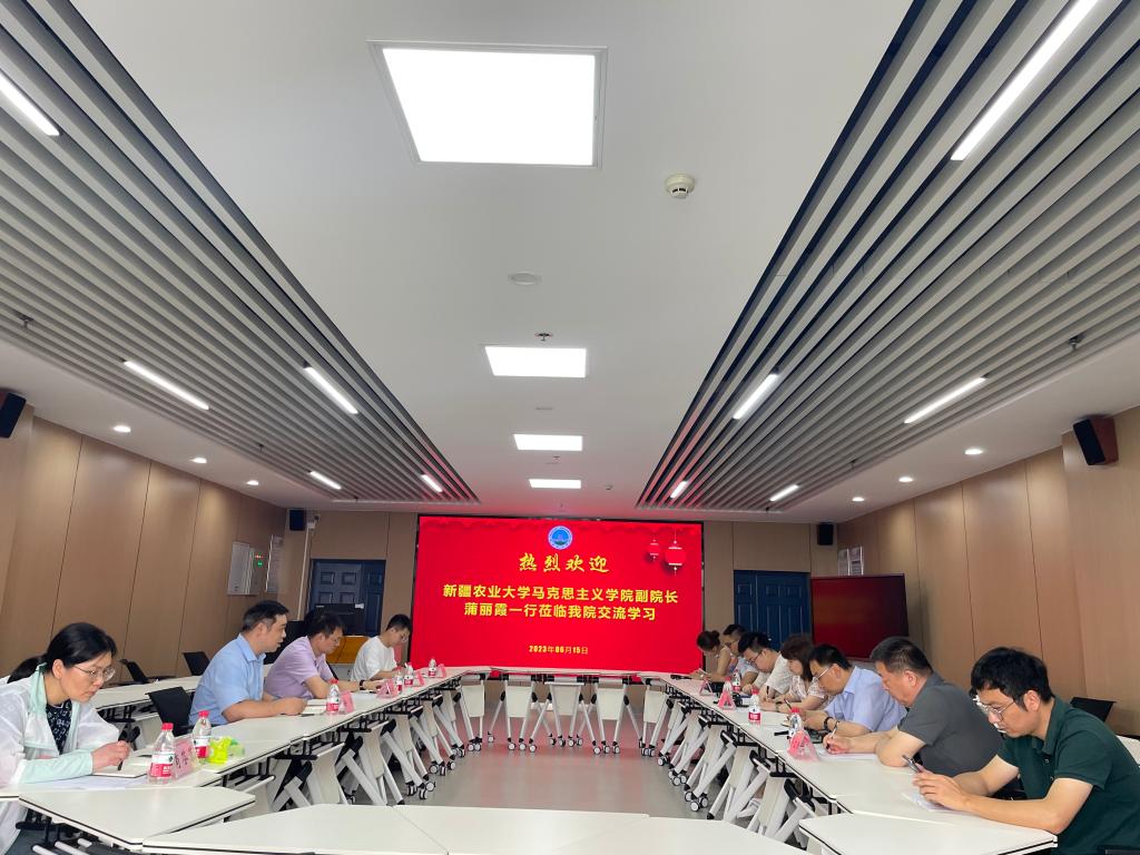 2023年6月15日,新疆农业大学hjc黄金城官方网站副院长蒲丽霞、党政办主任齐立新、德法教研室主任王嘉辰以及新疆医科大学hjc黄金城官方网站教研办主任蒋涛一行4人来我院学习交流。院长姜学勤、院长助理李振华、生命长江虚拟仿真教学体验中心主任徐骆、道法教研室主任肖芬蓉、生命长江教研室副主任何波参加了交流会。