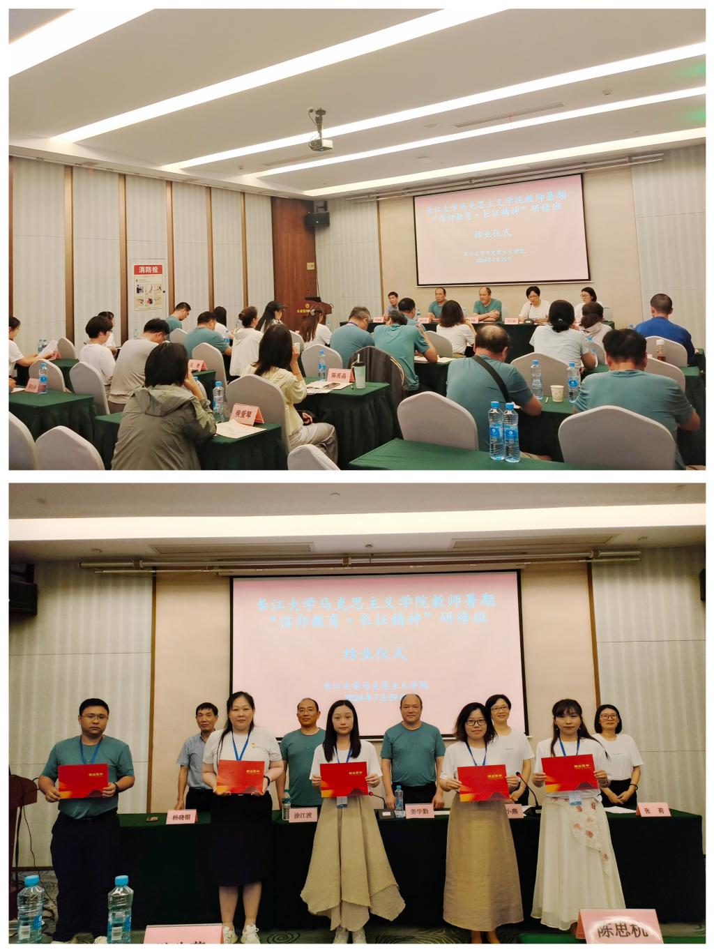 “雄关漫道真如铁,而今迈步从头越。”在专题讲座后,研修班举行了结业仪式。院长姜学勤以“回望、追思、缅怀、体悟”为关键词,回顾了研修班的学习历程。他认为,本次研修坚持理论与实践相结合,做到了学思践悟相统一。如何进一步提升思政课育人实效?他指出,要坚决落实立德树人根本任务,注重吸收消化,将此次研修所学融入思政课教学和学术研究;要深入贯彻落实习近平总书记对学校思政课建设重要指示精神,将研修中的一手教学资料融入课程体系之中,把道理讲深讲透讲活;要深入学习贯彻党的二十届三中全会精神,切实发挥思政课育人主渠道、主阵地作用,努力培养更多让党放心、爱国奉献、担当民族复兴重任的时代新人。院党委书记刘小燕在总结中指出,学校高度重视思政课教师队伍建设,大力支持思政课教师实践研修活动。本次研修通过专题报告、现场教学等方式开展沉浸式、体验式研学,内容丰富、形式多样,老师们全情投入、收获满满,在“一线的专业课”和“行走的思政课”中提高了综合素质和业务能力。她希望,学员们以本次研修为契机,坚持学以致用,创新教学方法,融入真情实感,注重学理哲理道理,增强讲好思政课的信心和决心,不断开创新时代思政教育新局面。结业仪式在全体学员们嘹亮的国际歌中结束。