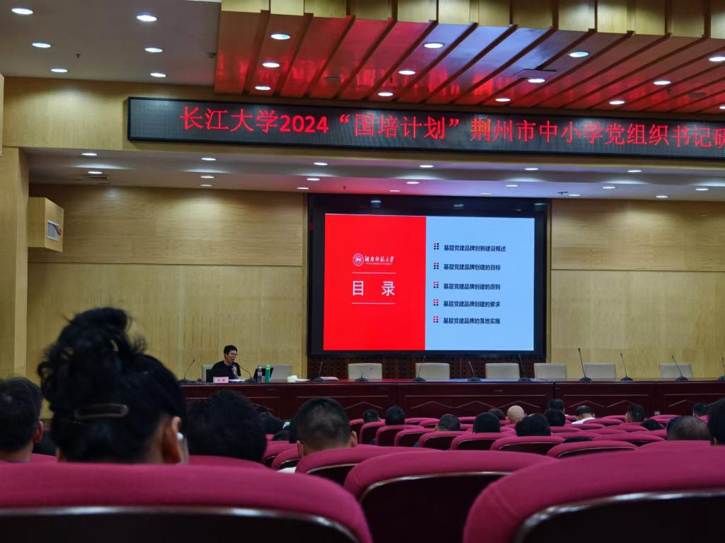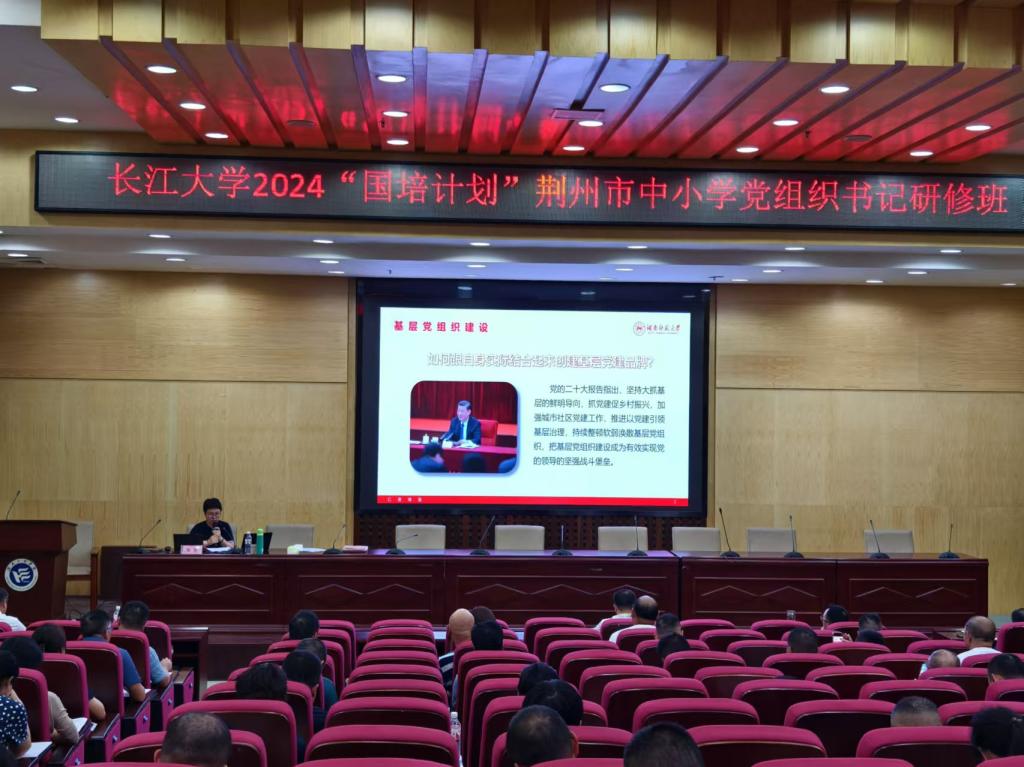2024 年 8 月 10 日下午 ,长江大学 2024“ 国培计划”荆州市中小学幼儿园党组书记研修班全体学员进行了以“基层党建品牌创新建设”为专题的研修学习。来自于湖南师范大学hjc黄金城官方网站的副教授、硕导张燮为学员们进行了专题指导讲座。该讲座由第七小组组长胡敬新主持。