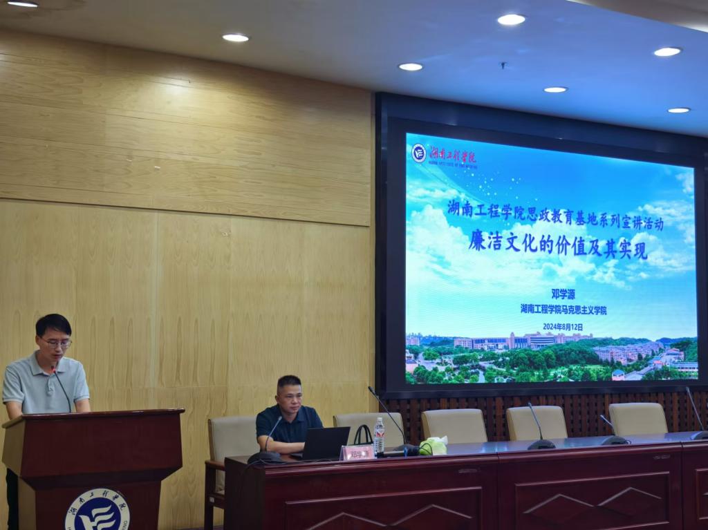 2024年8月12日上午,长江大学2024“国培计划”荆州市中小学幼儿园党组织书记研修班全体学员进行了以“廉洁文化的价值及其体现”为专题的研修学习。来自湖南工程学院hjc黄金城官方网站的院长邓学源教授为学员们进行了专题指导讲座。该讲座由第九小组组长戴健主持。