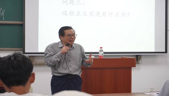 “这些主义究竟有什么用?”黄教授的第三问激发同学们反思各种主义有何现实意义。“人只不过是一根苇草,是自然界最脆弱的东西,但他是一根能思想的苇草”。维持社会安定不仅需要武装力量的支持,还需要另一种软武器——思想的力量。于政府而言,主义能够从理论上阐释一种制度构建的合法性、合理性,从而使人们自觉接受主导价值观;于个人而言,主义能引导人们树立正确的价值观。