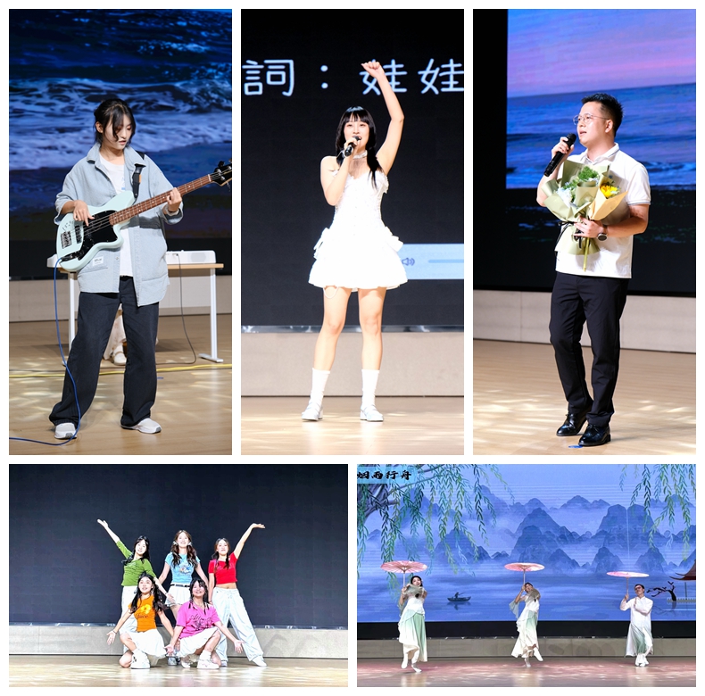 热力四射的开场舞《Like the world begins》点燃全场,第一篇章“邂逅·追光而行”随之温情开启。歌曲《二十二》倾诉了青春的迷茫与憧憬;古典舞《烟雨行舟》以如梦如幻的舞姿诠释了东方美学;乐队弹唱《想去海边》表达了对成长的释然和幸福自由生活的向往;何波老师带来的《情歌》,将变幻的爱情唱成了永恒的诗篇。