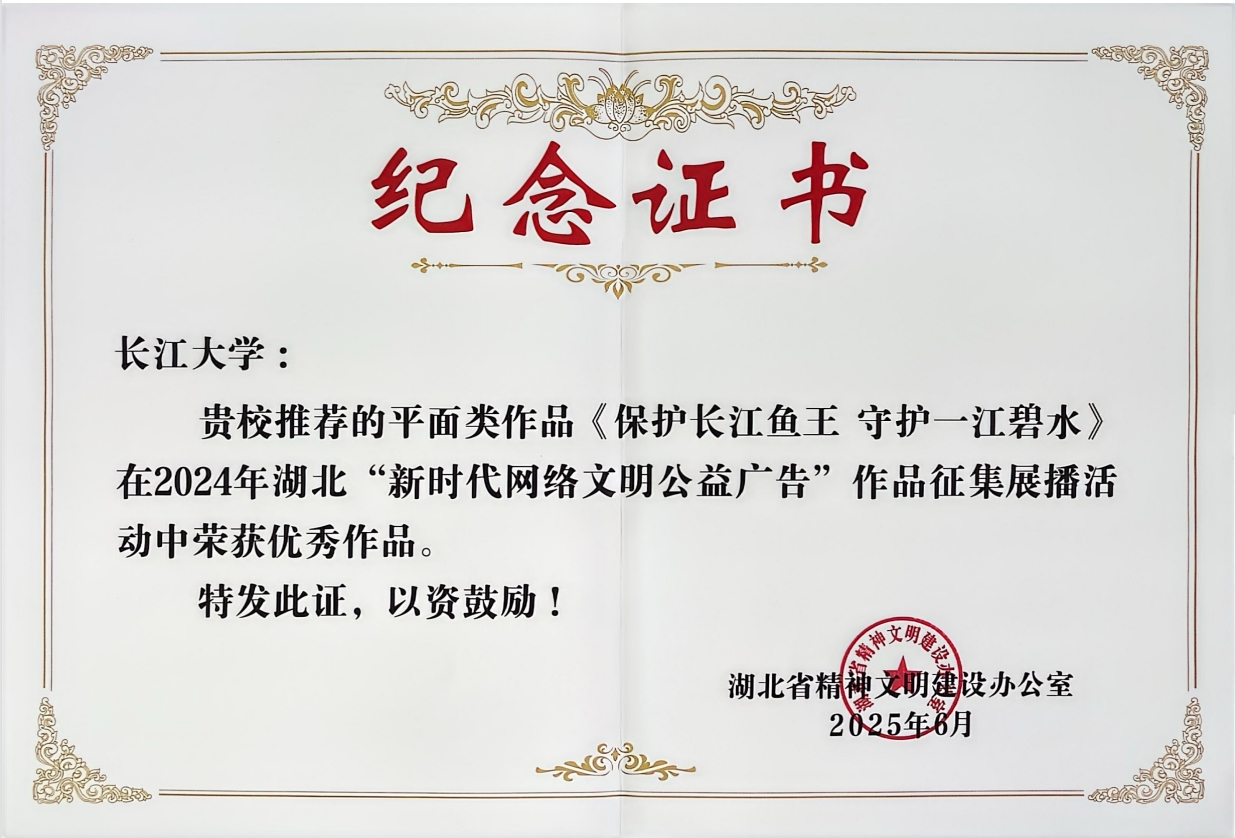 新闻链接:我校1作品荣获省文明办表彰-长江大学新闻网 https://news.yangtzeu.edu.cn/info/1021/36366.htm