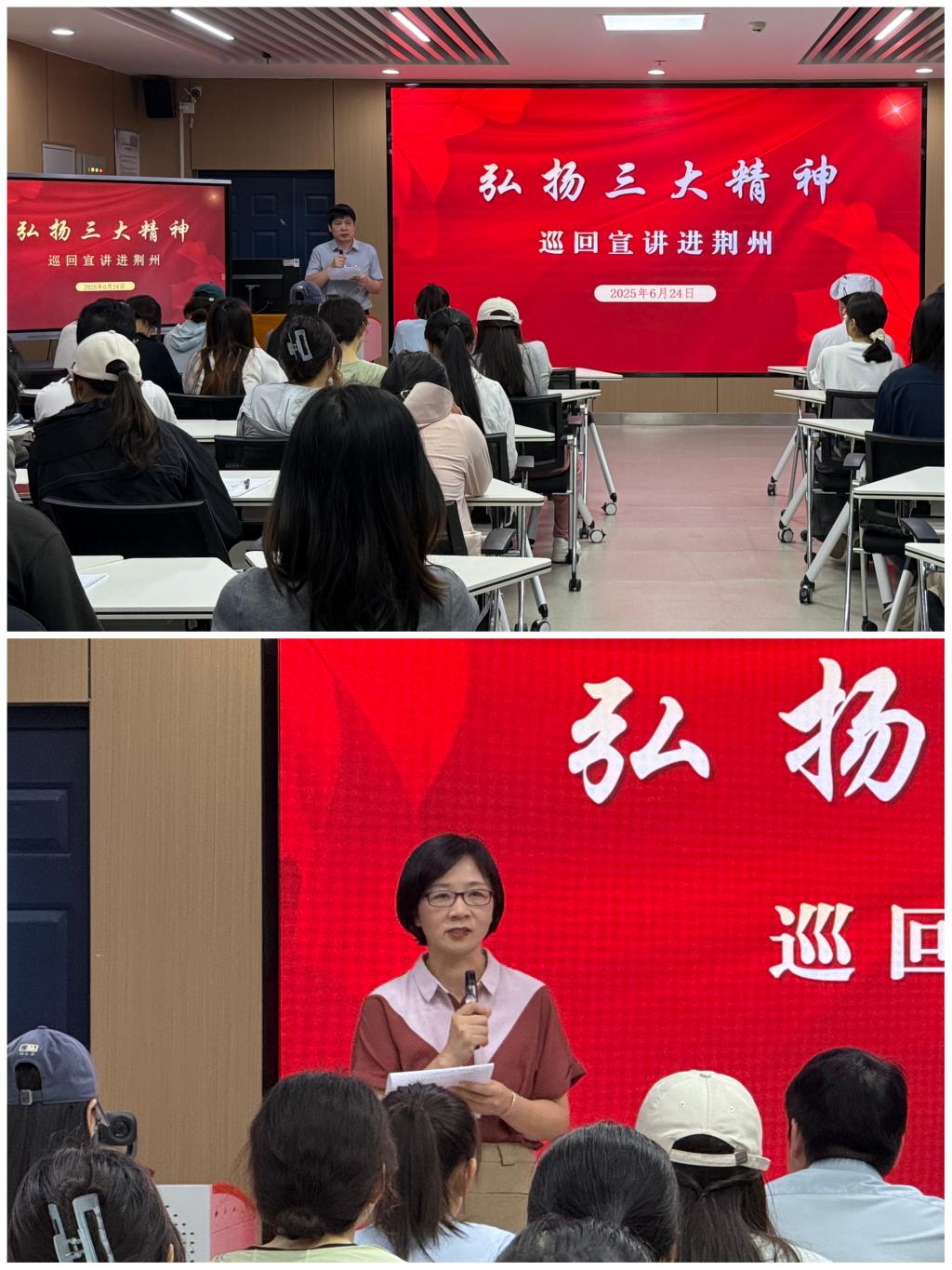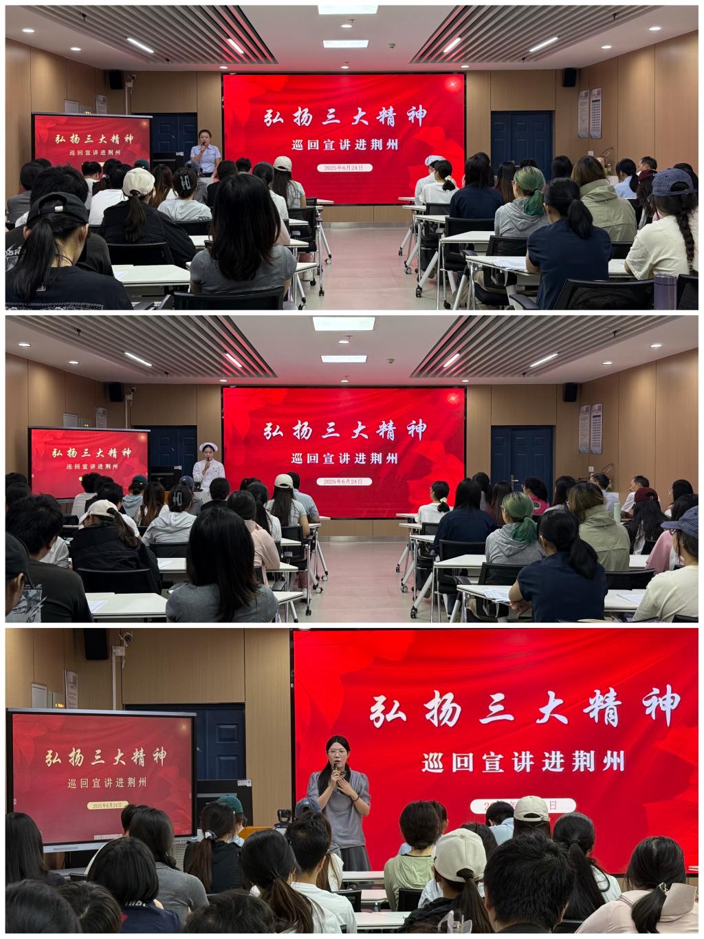 弘扬大别山精神、抗洪精神、抗疫精神,传承和赓续红色血脉。6月24日,由省委宣传部、省委讲师团组建的巡回宣讲小分队走进荆州长江大学马克思学院,面向师生开展弘扬“三大精神”(大别山精神、抗洪精神、抗疫精神)宣讲。