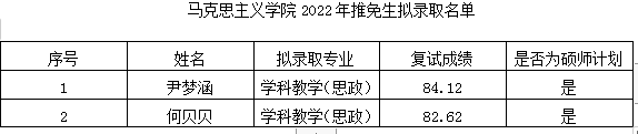 根据《教育部关于印发《2022年全国硕士研究生招生工作管理规定》的通知》(教学函〔2021〕2号)等有关文件和要求,现将我院2022年推免生拟录取名单予以公示,公示日期:2021年10月8日-10日。