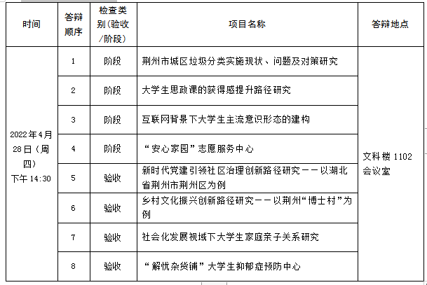 根据学校《关于做好2022年我校大学生创新创业训练计划项目结题验收、阶段检查工作的通知》要求,结合我院实际情况,现将我院2022年大学生创新创业项目阶段检查及结题验收现场答辩安排如下: