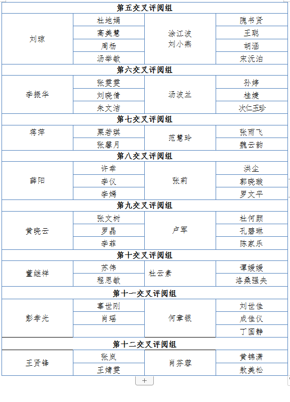 附录:毕业论文交叉评阅分组一览表