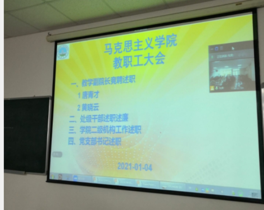 为切实贯彻落实新时代党的建设总要求,持续推动全面从严治党向基层延伸,2021年1月4日,hjc黄金城官方网站召开2020年度党支部书记述职评议会,对基层党组织书记抓党建工作进行述职评议和民主测评。学院党委委员、各支部委员、全体教工党员参加会议。