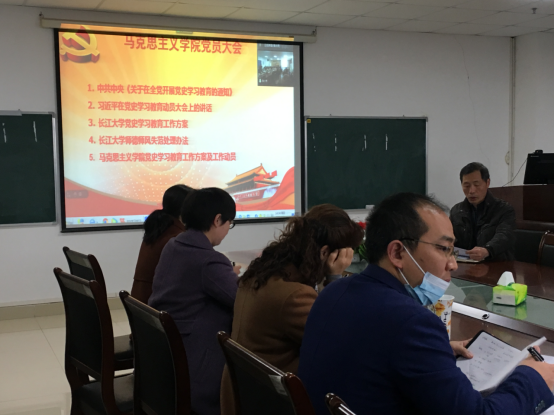 会上,院党委书记吴智勇领学了中共中央《关于在全党开展党史学习教育的通知》、习近平在党史学习教育动员会上的讲话,宣讲了长江大学党史学习教育工作方案,并对我院的工作方案做了详细介绍,针对具体工作任务面向全体党员进行了宣传动员。