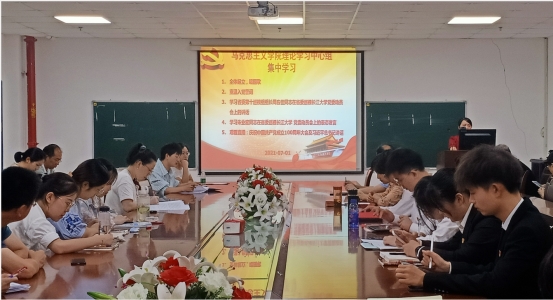 2021年7月1日,hjc黄金城官方网站党委理论学习中心组在文科楼1104室开展了第九次集中学习,全院在校师生党员共同参会。