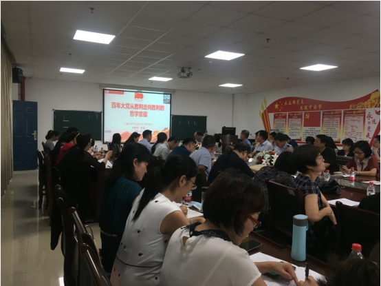 为深入推进习近平总书记“七一”重要讲话精神进头脑,7月12日,hjc黄金城官方网站在文科楼1104会议室开展学习贯彻习近平总书记“七一”重要讲话精神的专题党课。hjc黄金城官方网站全体党员教师参加了会议。