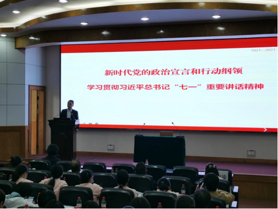 刘小燕书记在主持报告会时强调,总书记那闪耀着马克思主义真理光芒的7000字讲话,将是指引我们新征程的行动指南。里面大量原创理论成果、殷切期望、伟大号召等每每读起来都让人干劲十足、豪迈不已,字字句句都值得我们马院师生研究阐述、服务社会,融入课堂、春风化雨。而朱书记的精彩授课,也为我们带来了一场生动的党史课、精彩的政治课、务实的宣讲会。这既是一次教研活动、集体备课会,又是一次主题党日。马院将进一步发挥学科专业优势,积极投身党史学习贯彻、落实三进、研究阐述、理论宣讲等工作中,全院师生以第一学院、第一学科、第一课程应有的姿态积极投入工作,以实际行动向党的百年华诞献礼。