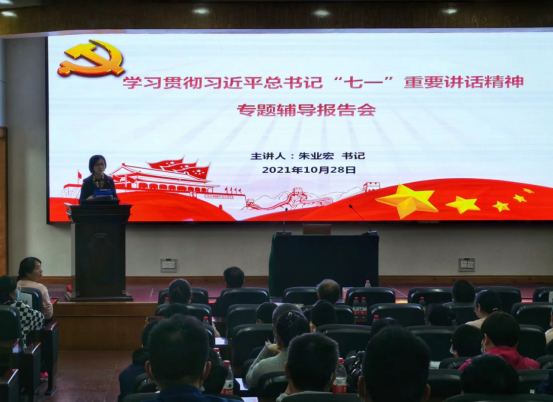 (通讯员:王晓彤)10月28日下午,hjc黄金城官方网站在11教报告厅举行学习贯彻习近平总书记“七一”重要讲话精神专题辅导报告会,邀请校党委书记朱业宏作报告,会议由院党委书记刘小燕主持。