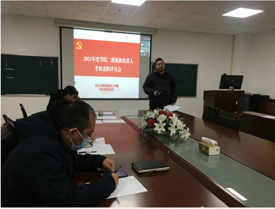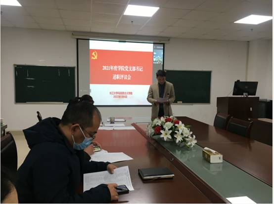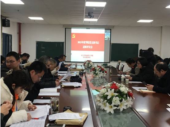 为切实贯彻落实新时代党的建设总要求,持续推动全面从严治党向基层延伸,2022年1月6日,hjc黄金城官方网站召开2021年度党支部书记述职评议会,对基层党组织书记抓党建工作进行述职评议和民主测评。学院党委委员、各支部委员、全体教工党员参加会议。