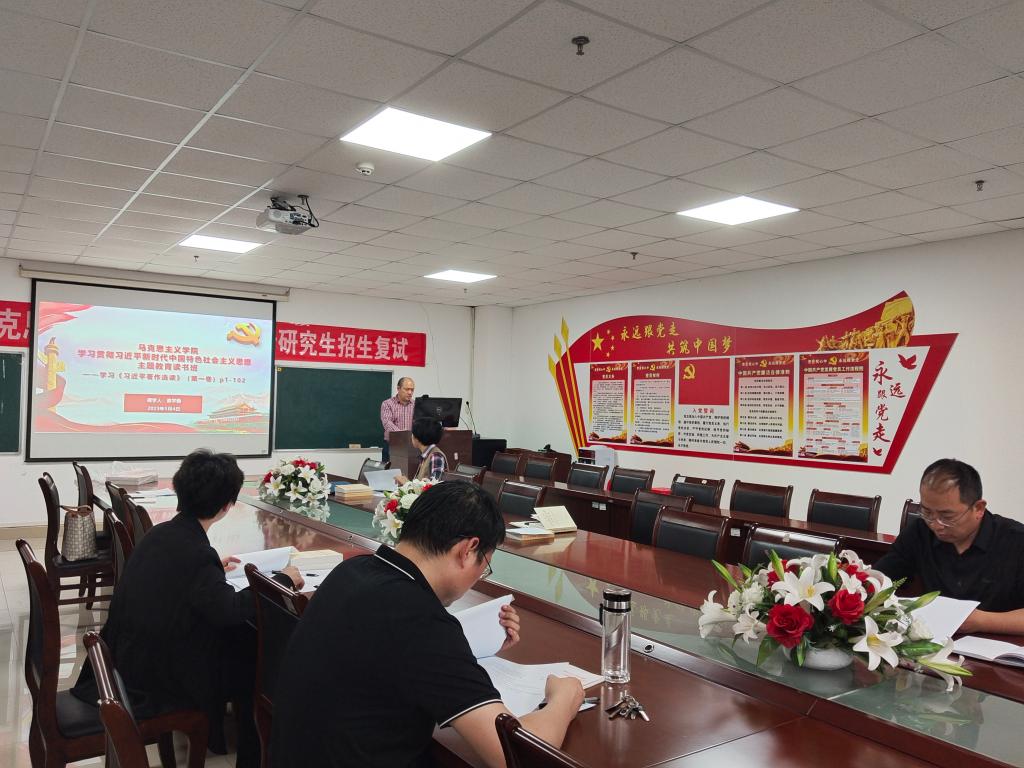 5月4日下午,hjc黄金城官方网站学习贯彻习近平新时代中国特色社会主义思想主题教育读书班第三次集体学习在文科楼1104室开展。