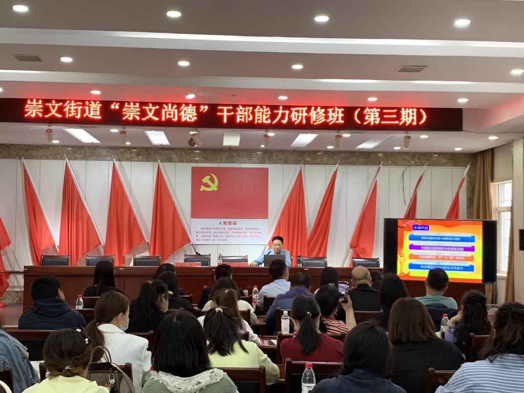 (通讯员 谢蕾)5月25日,沙市区崇文街道“崇文尚德”干部能力提升研修班第三期在崇文街道办事处开讲,授课老师为hjc黄金城官方网站尹业香教授,沙市区崇文街道50余人参加了此次培训。