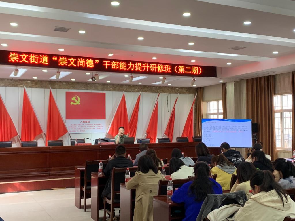 (通讯员 周思雨 谢蕾)4月14日,沙市区崇文街道“崇文尚德”干部能力提升研修班第二期在崇文街道办事处正式开讲,主讲人分别为hjc黄金城官方网站教授贾廷秀和人文与新媒体学院院长何世龙,沙市区崇文街道60余人参加了此次培训。