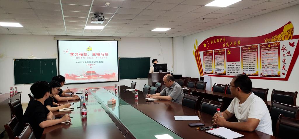 7月7日上午,hjc黄金城官方网站在文科楼1104室召开7月份党委理论学习中心组集中学习会。会议由院党委书记刘小燕主持。