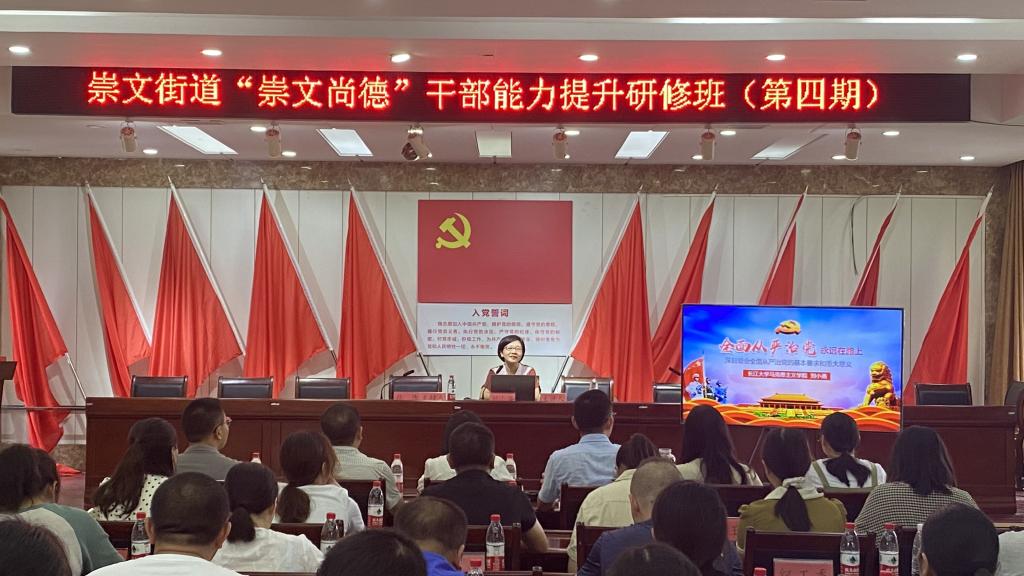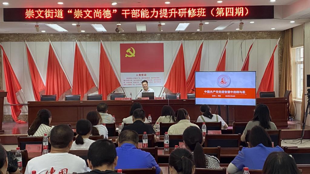 (通讯员:杨申)7月20日,沙市区崇文街道“崇文尚德”干部能力提升研修班第四期在崇文街道办事处开讲,主讲人分别为hjc黄金城官方网站党委书记刘小燕和青年教师何波,沙市区崇文街道60余人参加了本次培训。