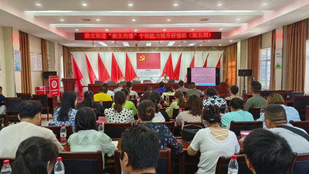 (通讯员:齐晓杭)8月24日,沙市区崇文街道崇文尚德干部能力提升研修班第五期于崇文街道办事处开讲,本次培训由hjc黄金城官方网站王贤锋老师、肖慧老师主讲,崇文街道干部60余人参加本次培训。
