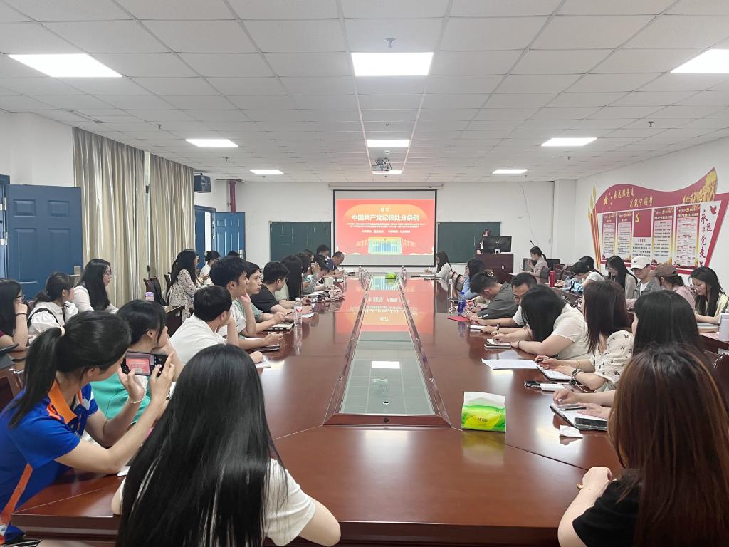 (通讯员 黎娟)为推进党纪学习教育在研究生党员中走深走实,教育引导全院研究生党员强化纪律意识,严守纪律规矩,5月14日下午,hjc黄金城官方网站研究生党员党纪学习教育专题宣讲会在文科楼1104会议室召开。长江大学研究生宣讲团成员熊思懿、王澳琪、王伟受邀作专题宣讲,hjc黄金城官方网站党委副书记兼马克思主义理论研究生党支部书记汤慧珍、副院长兼学科思政研究生党支部书记涂江波、全体研究生党员及入党积极分子共50余人参加学习。活动由学院研究生党员吴宜格主持。