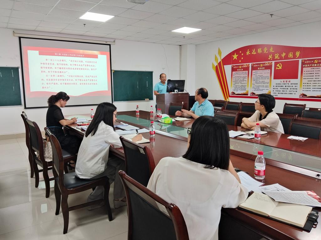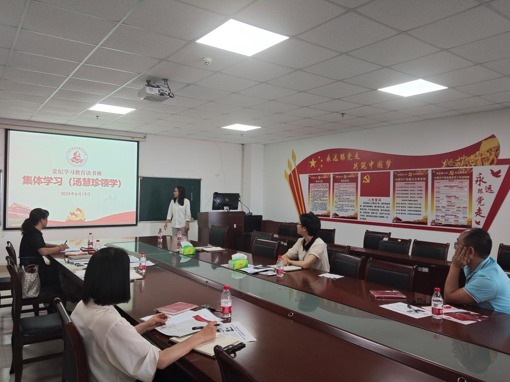 6月13日上午,hjc黄金城官方网站在文科楼1104室举行党纪学习教育读书班集中学习会,专题学习《中国共产党纪律处分条例》(以下简称《条例》),跟进学习党的创新理论,传达学校最新会议精神。学院党委理论学习中心组成员及党委委员参加学习会,学习会由院党委书记刘小燕主持。
