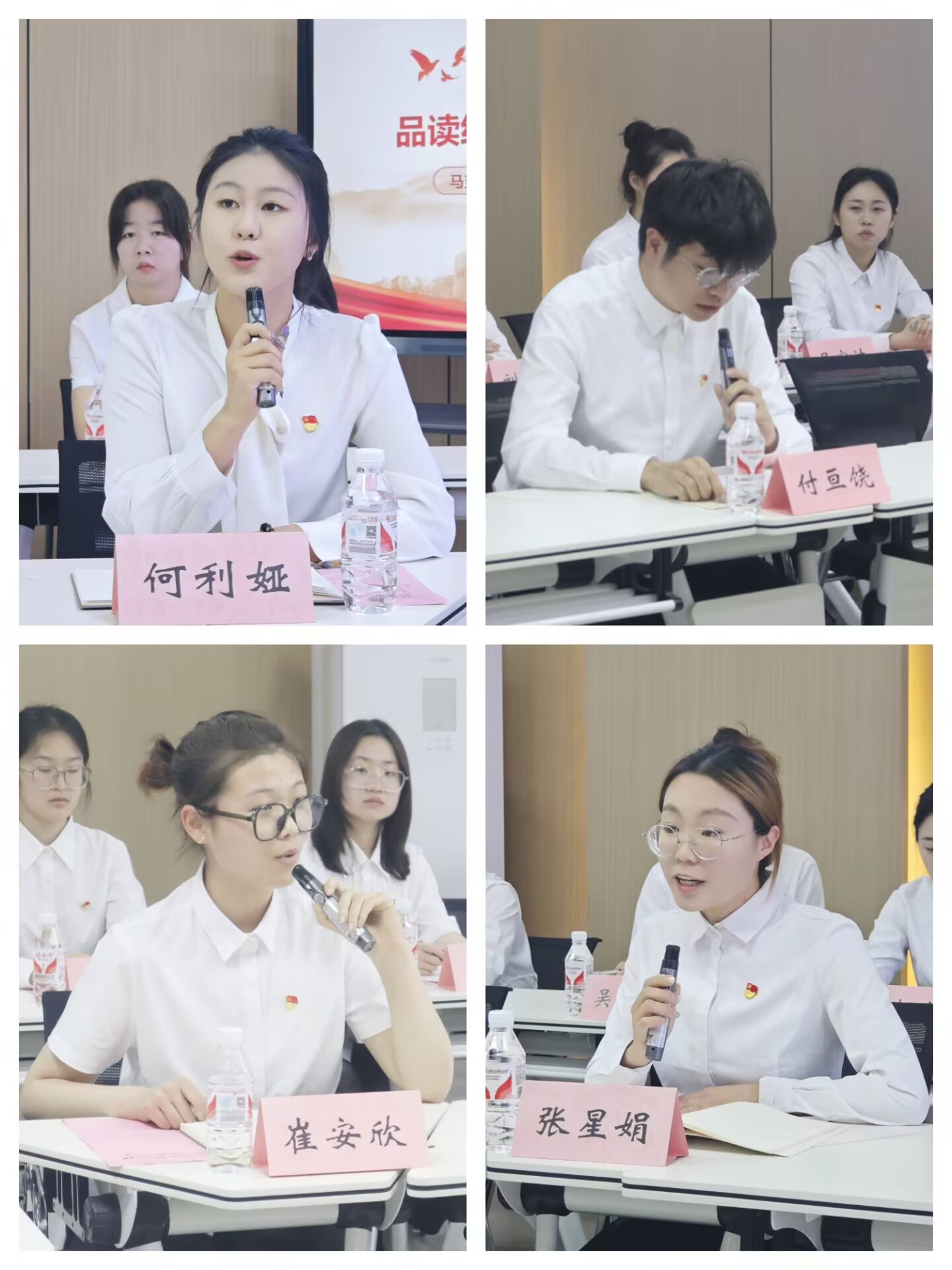 结合个人实际,何利娅、张星娟、付亘饶、崔安欣等四位同志畅谈学习中央八项规定精神的心得体会。他们表示,将以“赶考”心态,永葆清正廉洁的政治本色,切实将铁规矩、硬杠杠内化于心、外化于行,以优良作风振奋精神、昂扬斗志、奋发有为、砥砺前行。