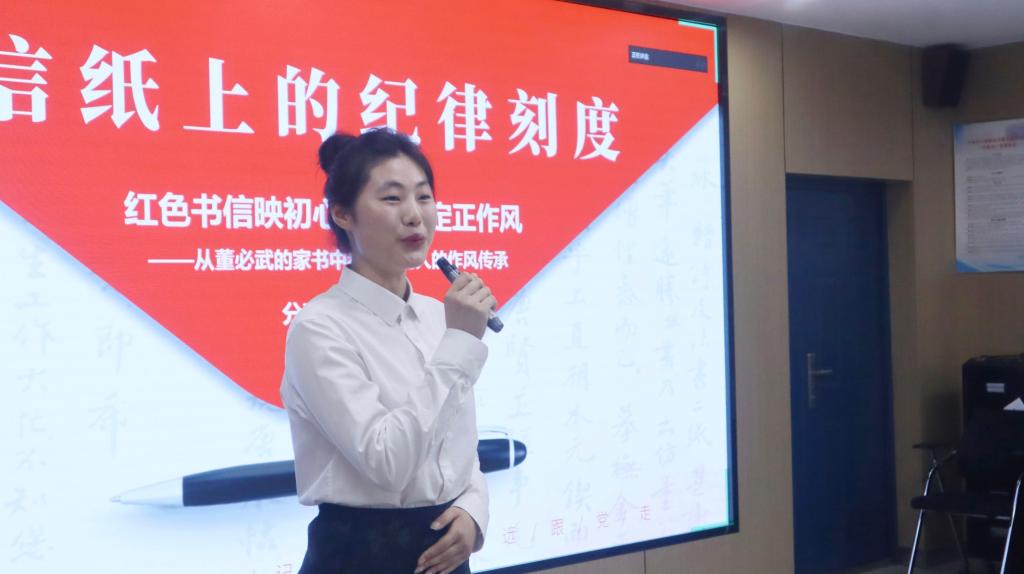 “职位越高越要简朴,党的经费一分一厘都不能乱花!”吴宇洁以“信纸上的纪律刻度”为题讲授微党课。在她的深情讲述中,发生在老一辈无产阶级革命家董必武身上的一则则廉洁小故事,犹如历史明镜,照见共产党人“公私分明、克己奉公”的政治品格,与中央八项规定“严禁利用职权谋私”之要求形成跨越时空的共鸣。