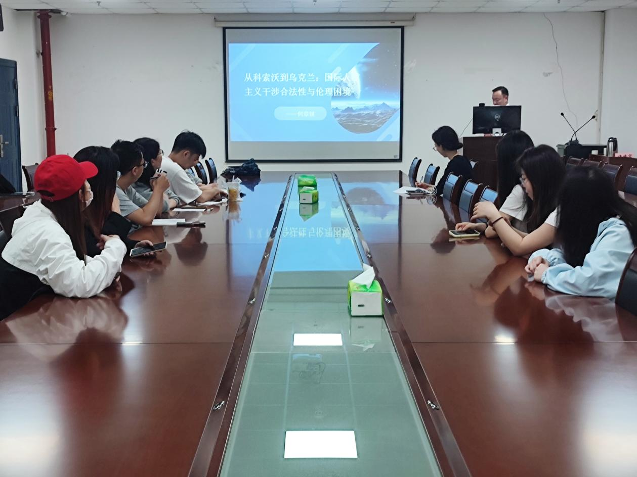(通讯员 贾献涛)为引发对于主权、人权与国际秩序关系的深层思考,4月11日上午,hjc黄金城官方网站求实导师学术沙龙第十期于文科楼1104室成功举办。本次讲座由法学博士、教授、硕士生导师何章银教授主讲,他以科索沃战争和乌克兰危机为例,探讨国际人道主义干涉的合法性与伦理困境。学院研一、研二部分学生参与。