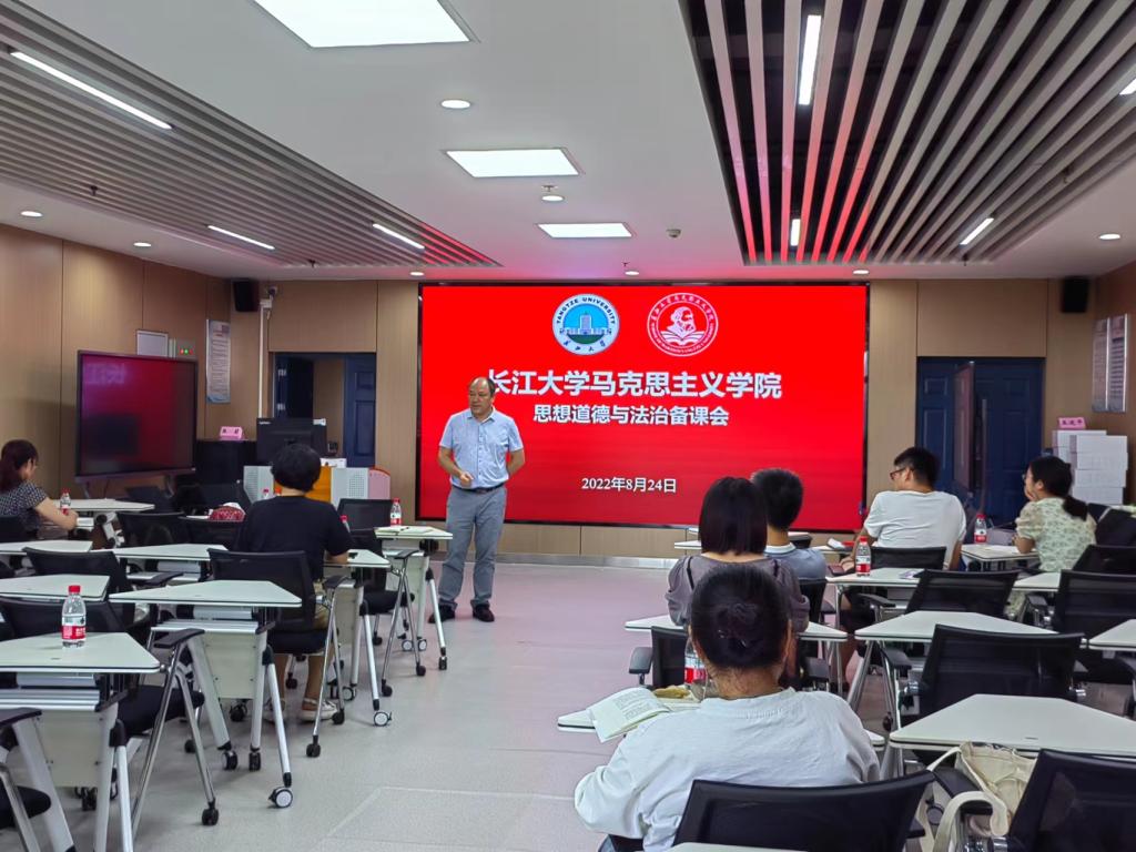 2022年8月24日下午,hjc黄金城官方网站《思想道德与法治》课程组在文科楼1008室开展集体备课会。会议由课程组组长肖芬蓉主持,课程组全体教师参会。本次会议有三个主要议程:一是开展新入职教师教学展示活动;二是新学期教学安排;三是开展专题理论学习。