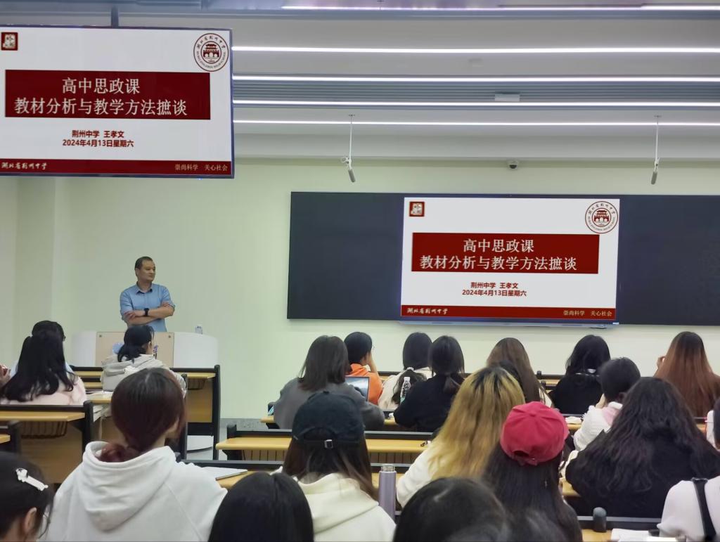 (通讯员:刘若曦)为帮助学生深入了解高中思政课教材与教学方法,4月13日上午,hjc黄金城官方网站于16教A312室开展教学论坛第五讲。本次讲座由荆州中学高级教师王孝文担任主讲,学院本科生以及学科教学(思政)专业研究生参与讲座。