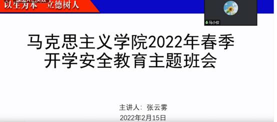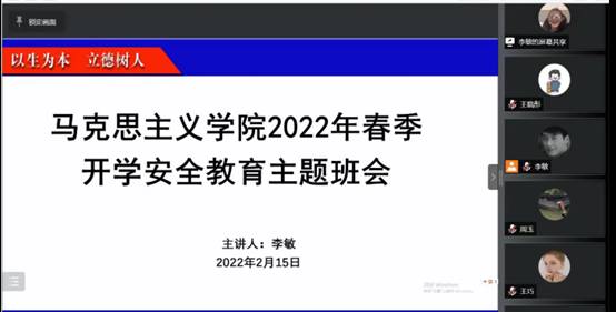 为保证新学期开学工作开展,hjc黄金城官方网站于2022年2月15日通过腾讯会议召开了3场春季开学安全教育主题班会,集中讲解相关注意事项。