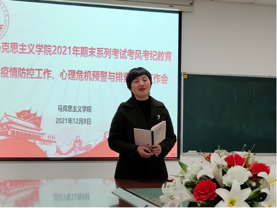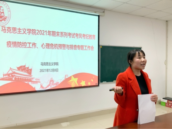 (通讯员、摄影:齐晓杭)12月8日下午6时,hjc黄金城官方网站在文科楼1104室召开期末系列考试考风考纪教育及疫情防控工作会议,本次会议由学工办主任张云雾主持,学院党委副书记马小佼、辅导员李敏出席会议。本研各班级的班长、团支书、副班长兼安全委员、心理委员及学生会、研究生会主要成员到场参会。
