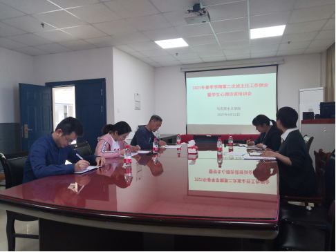2021年4月22日,hjc黄金城官方网站在文科楼1101室召开了本学期第二次班主任例会暨学生心理访谈培训会,会议由院党委副书记马小佼主持。