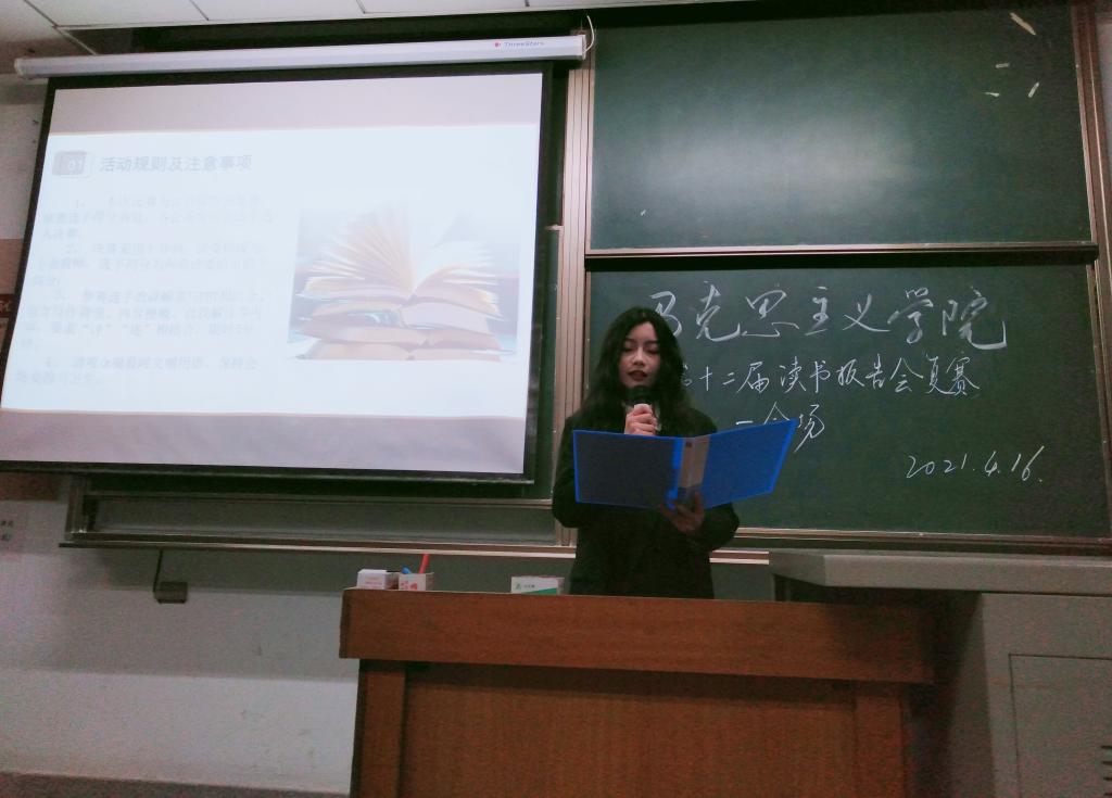 (通讯员 王晓彤)花香阵阵,鸟鸣锵锵。人间四月,书声琅琅。4月16日晚7时,hjc黄金城官方网站在13教B110(一会场)和13教A103(二会场)举办主题为“悦读经典 读善其身”的读书报告会复赛。 一会场中学院青年教师罗小玉、辅导员李敏和第六届研究生会主席张夕雨受邀担任评委出席现场活动,郭慰主持会场比赛。二会场中学院副教授、青年博士肖慧,青年博士何飞,第八届团委学生会主席罗金受邀担任评委出席现场活动,翟高主持会场比赛。