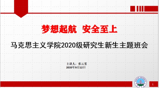为巩固疫情防控成果,严格落实常态化疫情防控要求,保证2020级学生顺利入学,hjc黄金城官方网站于2020年9月12日通过腾讯会议组织开展了“梦想起航,安全至上”主题班会。辅导员李敏、张云雾分别面向2020级本科生和研究生新生做了专题讲解。