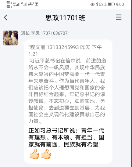 7月20日,学院组织了“学习小组”线上座谈会,深入学习习近平总书记回信精神,并邀请学院“青马班”学员杨帆分享学习实践经历,突显青年学生的责任意识和担当精神,突出价值引领与思想引导,辅导员张云雾老师参会。